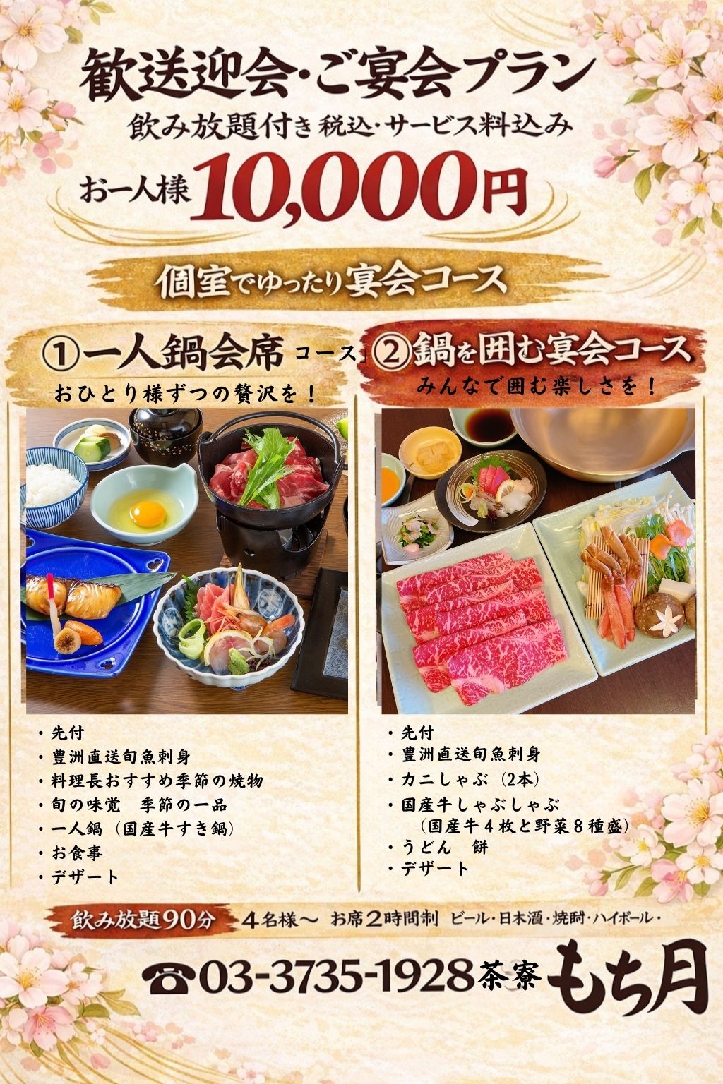 「蒲田 しゃぶしゃぶ」「蒲田 すき焼き」「蒲田 ふぐ」でお店をお探しの方は、ぜひしゃぶしゃぶ茶寮もち月へ。