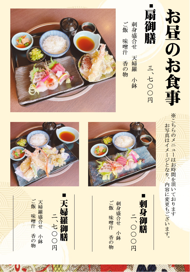 ▶日替わり昼御膳やお楽しみ二重箱等の通常のランチメニューをご注文いただけます。