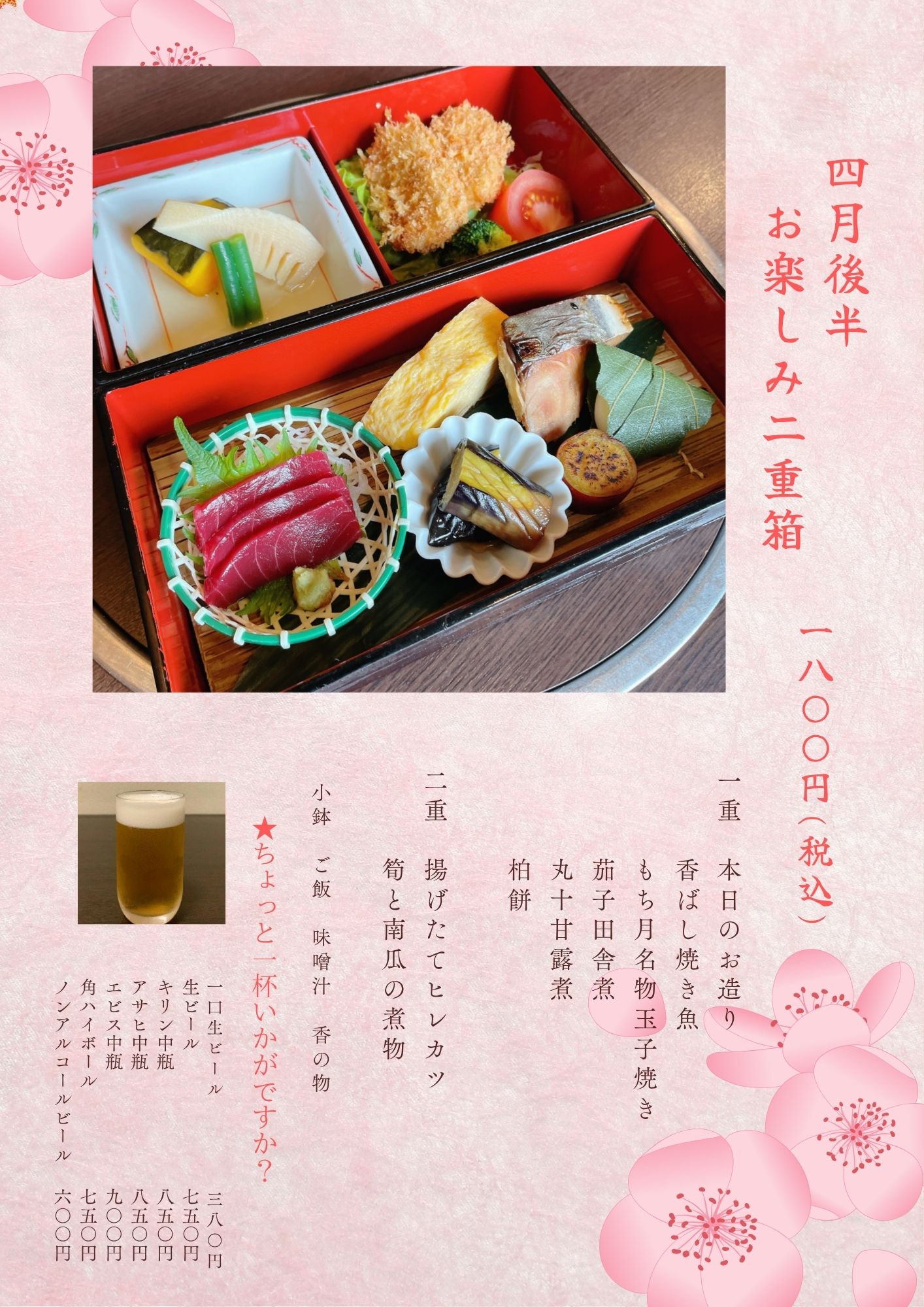 ▶日替わり昼御膳やお楽しみ二重箱等の通常のランチメニューをご注文いただけます。